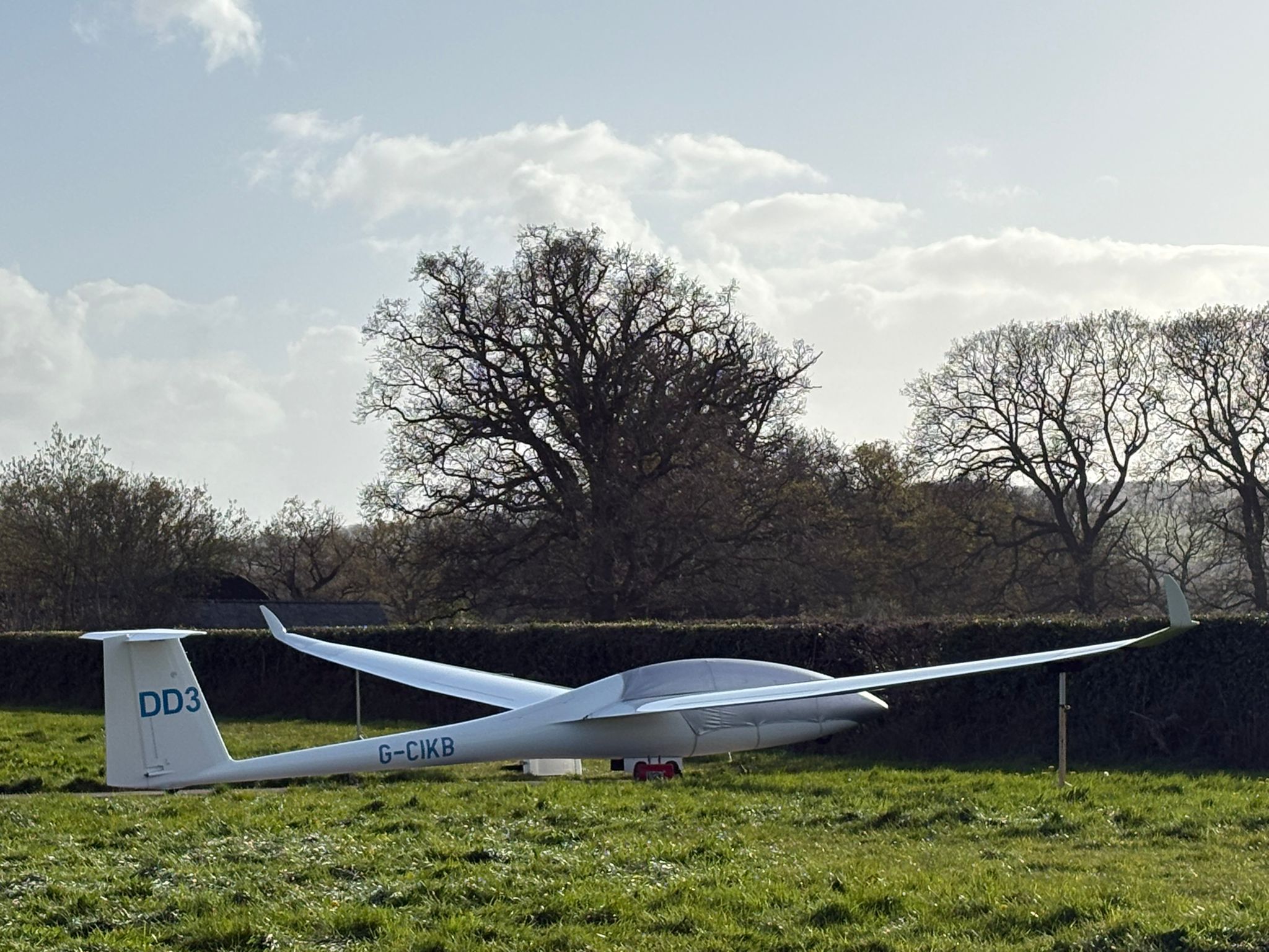 Saturday was forecast to be very blustery with showers and with Chris G absent as he dealt with the very sad loss of his dog “Big Joe”, we were left to fend for ourselves. The Nimbus and Duo were readied but the wind was very gusty from the SW and rain looked to be building. John A took a tow but very wisely opted to cut it short when the full extent of the incoming weather could be seen. He did a great job landing as the conditions got even sportier and in consultation with the tuggie who had just landed we opted to pull stumps and make safe the gliders and wait for Sunday!