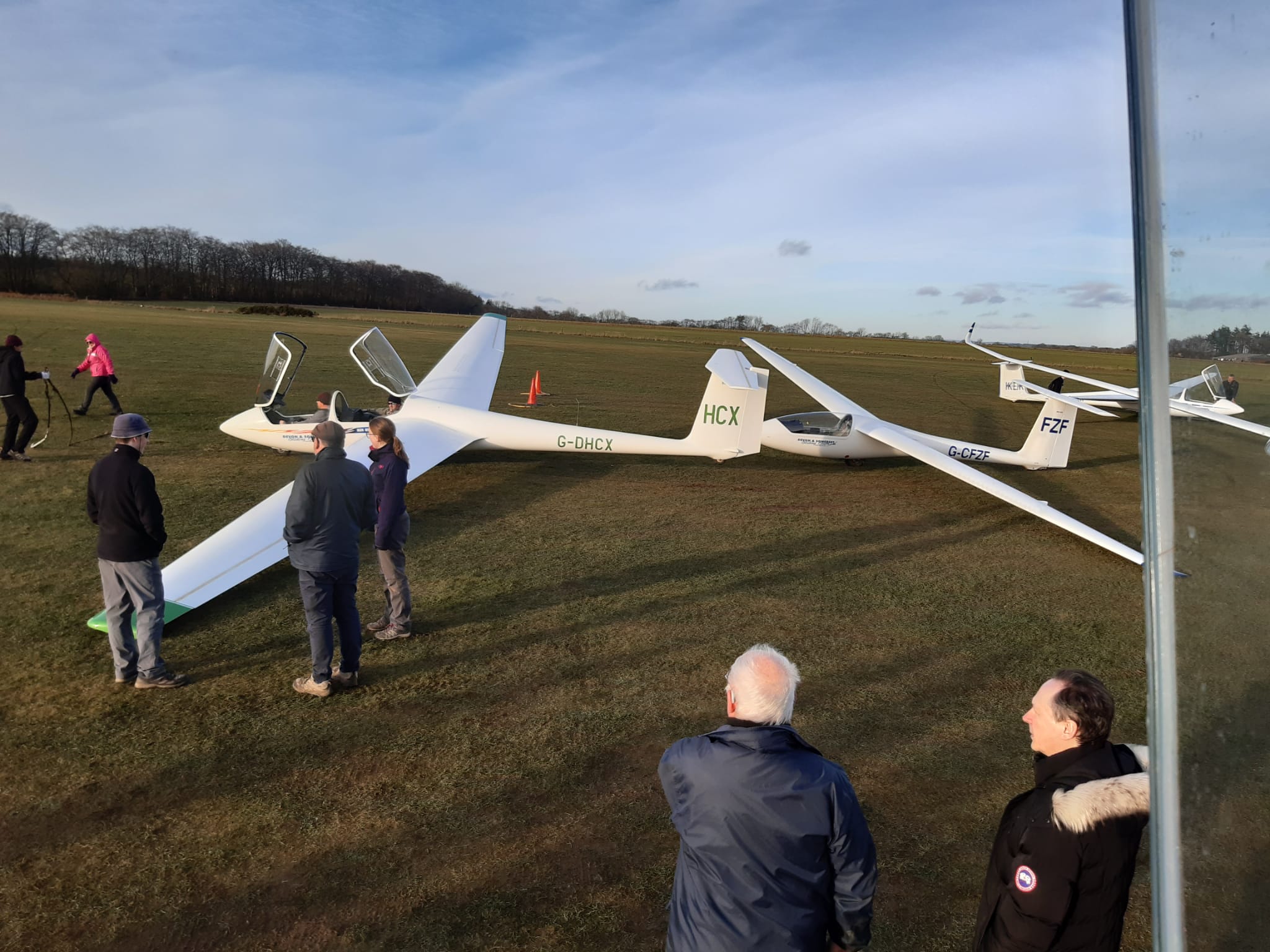 Mark Courtney was the Duty Instructor and with all gliders promptly inspected, the briefing started at 9.15 leading to the first glider being at the launch point (by the glider trailers) less than half an hour later.
