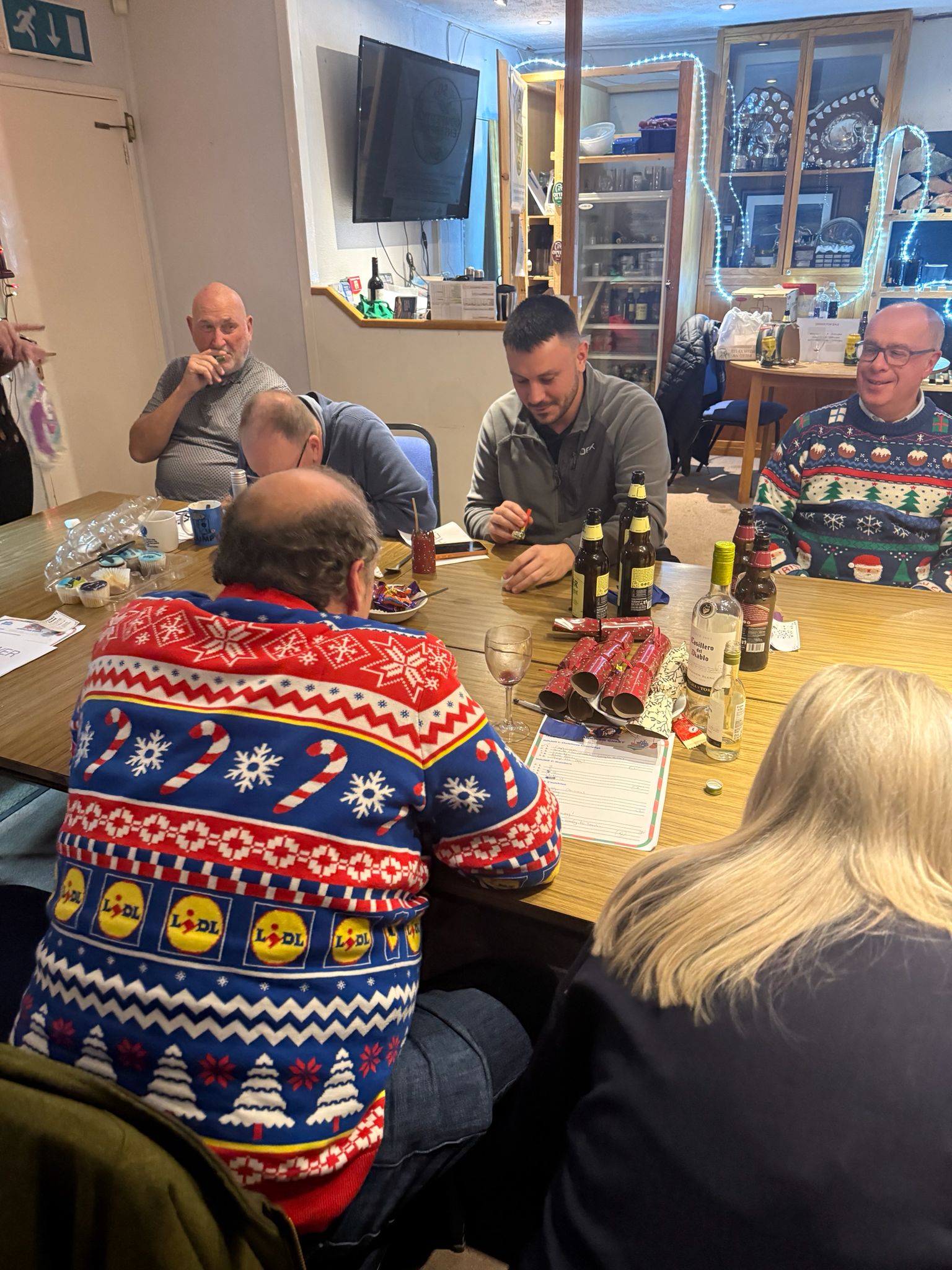 Lots of hideous christmas jumpers, and much fun and merriment was had by all, aided and abetted by Sally, who filled the evening with Christmas games and a quiz. Again, massive thanks to Vicki who laid on the most amazing Christmas Dinner for all!