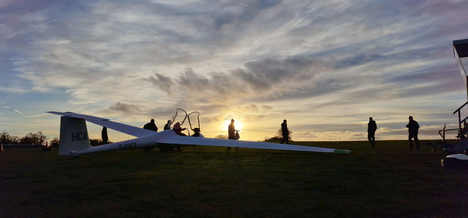 After the recent biblical rains, I was half expecting to see a boat perched on North Hill. Instead, the early birds had already started the club gliders’ Daily Inspections, eager to make the most of the short winter day.