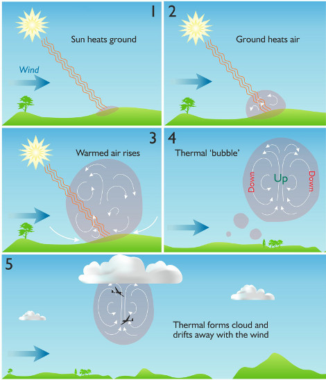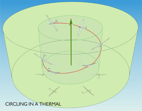 A thermal is a volume of air that has been heated by the sun that is warmer than the surrounding air. As we know, hot air rises, and circling within this rising air allows birds, and gliders, to go upwards.