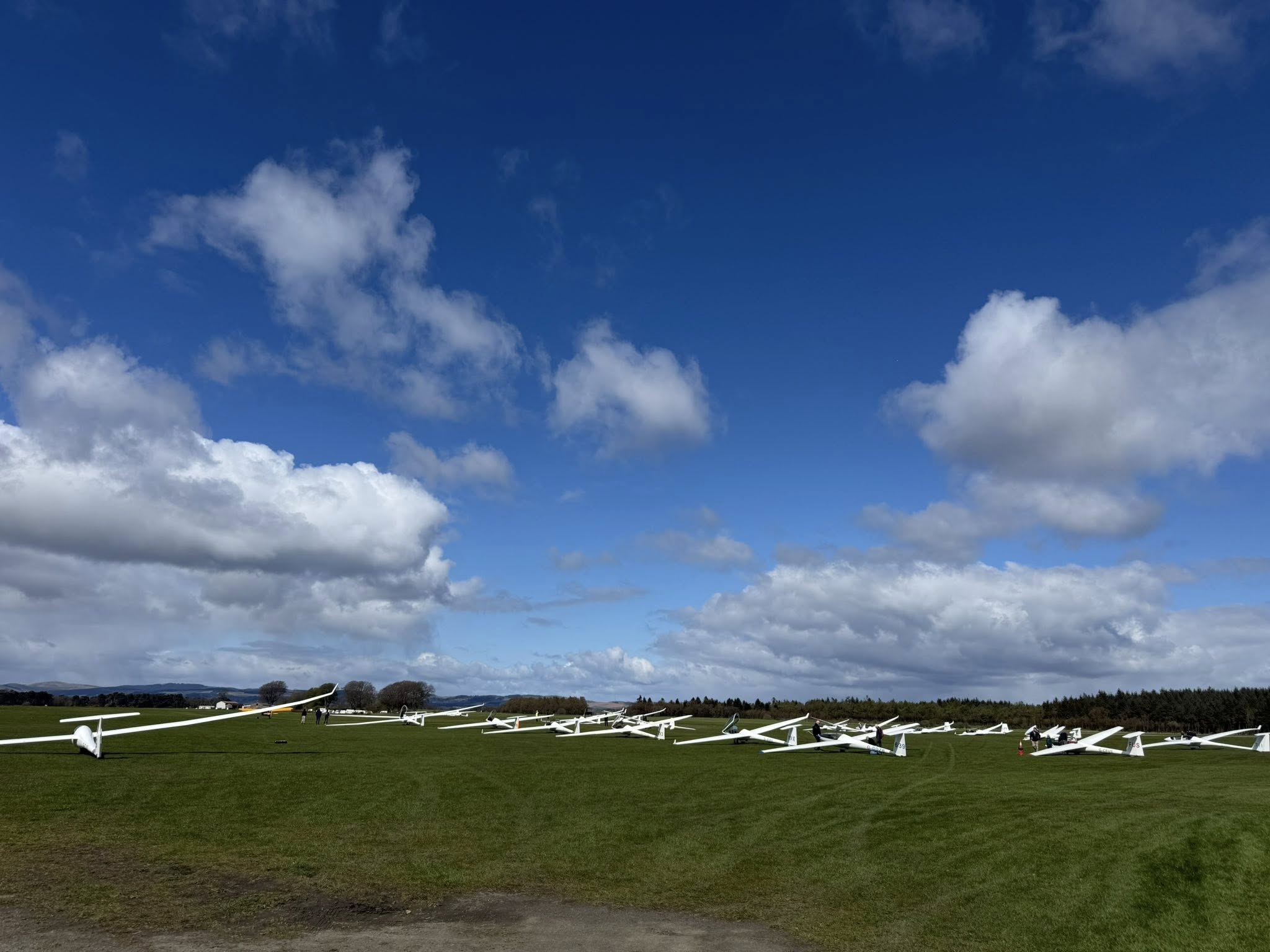 After working on the DG505 trailer for several hours making various repair improvements Mark and Simon took JZK for the last flight of the day. Guy Adams (Open Cirrus CEC) had arrived yesterday and took to the skies for a couple of flights. Ron and Daniel Johns took the ASH25 (711) off to explore the Scottish countryside dodging the rain showers which appeared during the afternoon.